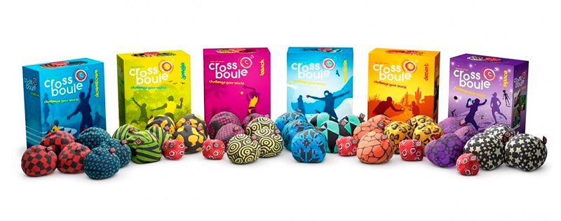 Bei „Crossboule“ hat jeder Spieler sein eigenes Kugel-Set in einem der zwölf modern gestylten Designs.