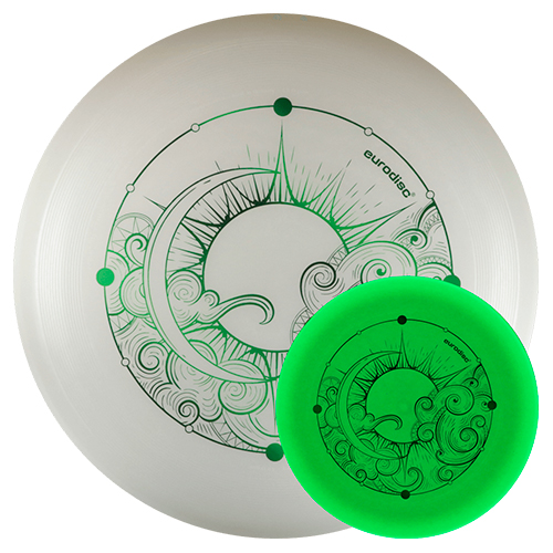 Die Scheibe wird aus einem fluoreszierenden Bio-Kunststoff gefertigt, der sich bei Licht auflädt und im Dunkeln leuchtet. Im Vergleich zu anderen fluoreszierenden Leuchtscheiben, kann die Eurodisc mit einer besonders langen und starken Leuchtkraft überzeugen.