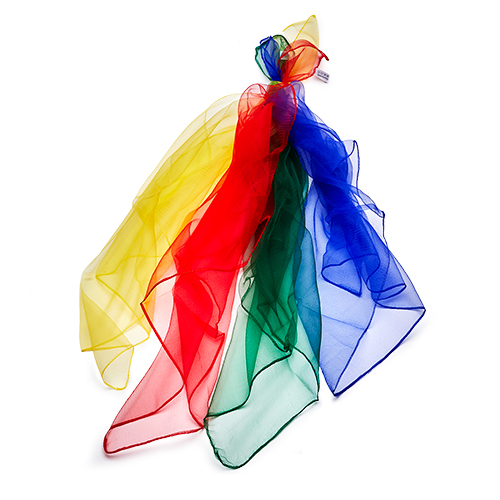Jongliertuchset bestehend aus 4 Jongliertüchern in den Farben rot, gelb, grün und blau.