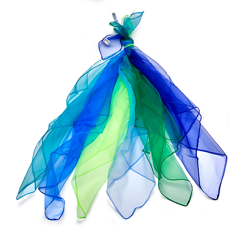 Jongliertuchset bestehend aus 6 Jongliertüchern in bläulichen Farben.