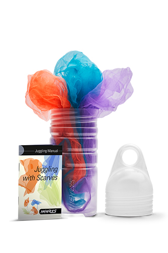 Jongliertuchset bestehend aus drei verschiedenfarbigen Jongliertüchern