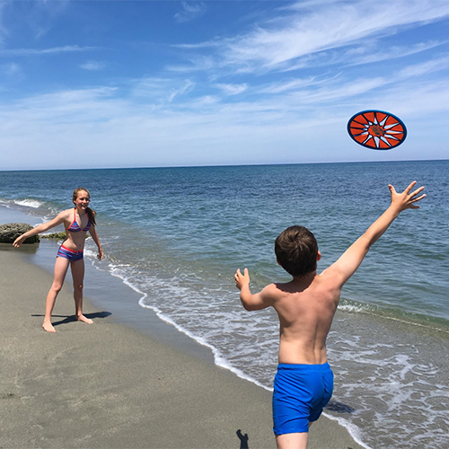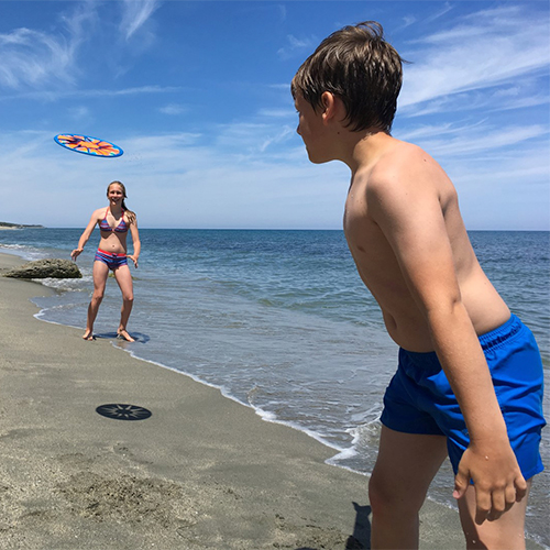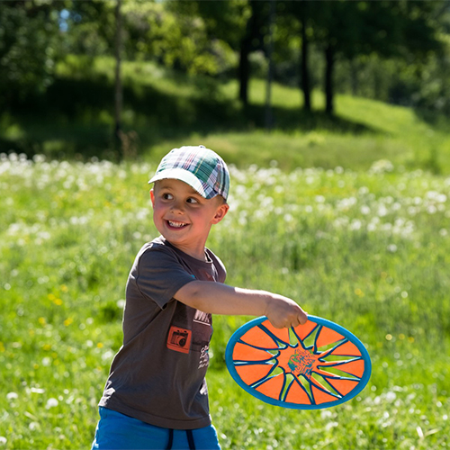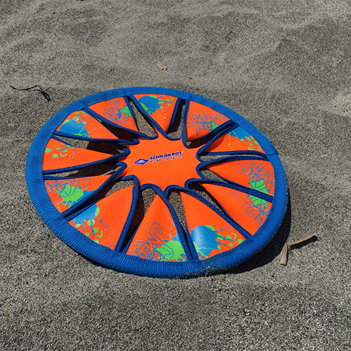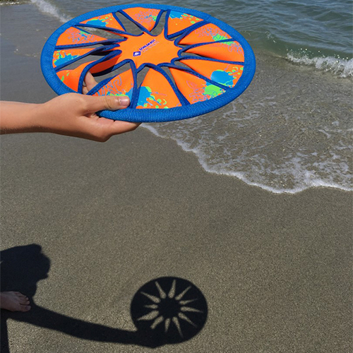 Die Neopren Disc ist sehr griffig und hat gute Flugeigenschaften. Aufgrund der gedrehten Flügel entsteht ein langsamer Flug. Kinder haben so mehr Reaktionszeit, können diese Frisbee leichter fangen und ein schnelleres Erfolgserlebnis ist garantiert! Die Wurfscheibe ist komplett mit weichem Neopren überzogen und somit nicht so hart wie eine herkömmliche Kunststoff-Scheibe. Durch das Neopren ist die Disc salzwasserfest, sie trocknet schnell und ist daher der optimale Begleiter für den Strand und das Meer.