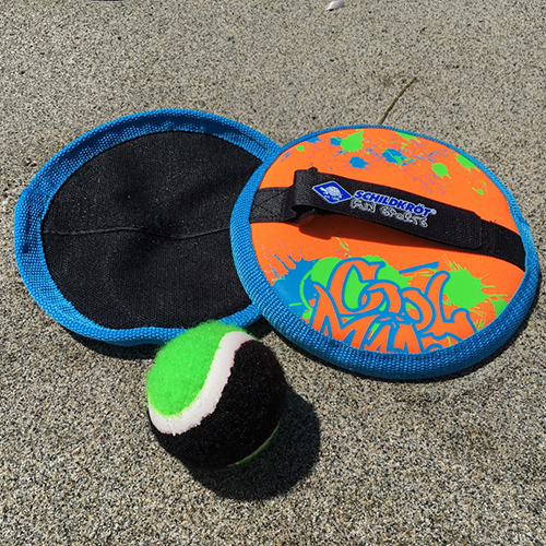 Der Klettball wird hin und her geworfen und mit dem Klett-Fänger aufgefangen. Der Ball bleibt an dem Fänger haften. Das Spiel macht viel Freude und schult nebenbei die Koordination Auge-Hand sowie die Wurftechnik. Ein Riesenspaß für jung und alt. Wie immer bei Schildkröt ist das komplette Set in einer wiederverschließbaren Netztasche verpackt, in die man nach dem Spiel alles wieder schön reinpacken kann. So findet man sicher auch den Ball beim nächsten Spiel wieder.