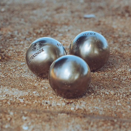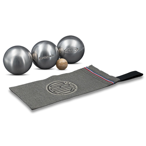 - Der Pétanque-Kugel-Dreiersatz OBUT Modell SUPERINOX Riefelung 0.