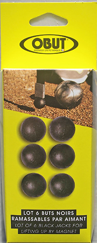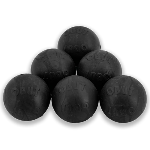 Patentierte Zielkugel, schwarz, aus Verbundstoff, von Obut speziell dafür entwickelt, dass sie präziser geworfen werden kann und weniger abprallt.