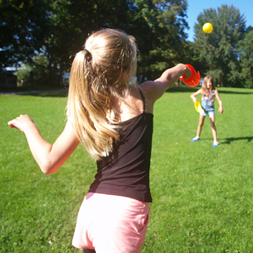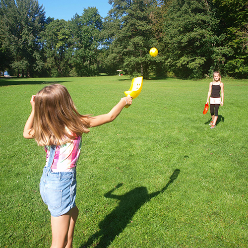 Das bekannte Geschicklichkeits- und Strandspiel mit variabler Fang- und Wurftechnik darf in keiner Familie fehlen. Es fördert Geschicklichkeit und Koordination. Der Ball wird mit den Fängern / Schlägern von unten oder etwas sportlicher auch von oben zum Mitspieler geschleudert / geworfen. Dieser muss dann den Ball mit seinem Schläger einfangen um den Ball anschließend sofort wieder zurück zu katapultieren. Scoop Ball fördert spielend die Geschicklichkeit und die Koordination und verbessert das Reaktionsvermögen!