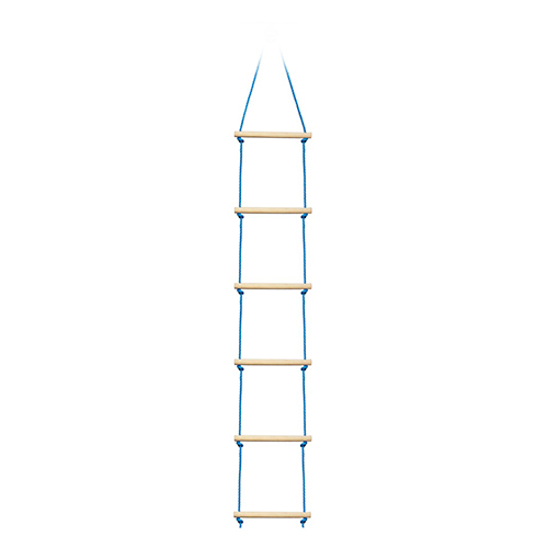 Hochwertige, robuste Strickleiter aus dem Hause Slackers USA. Ideale Ergänzung zur Slackers Ninja-Line (zum Hochklettern an den oben gespannten Hangelparcour), aber auch ideal für Schaukelgestell, Klettergerüst, Baumhaus, Hochbett oder Baumklettern. Die Slackers Strickleiter überwindet mit ihren 3 Metern Gesamtlänge einen Höhenunterschied von ca. 2,5 Meter. 6 hochwertige runde Holzsprossen (unbehandelt, Breite 38cm, Durchmesser etwas über 3cm, Kanten entgratet, Abstand zwischen zwei Sprossen ca. 30cm). Ca. 1,2cm starkes witterungsbeständiges, blaues Kunststoffseil, oben geschlossen zum einfachen Schlingen der Leiter um die Ninja-Line oder einen Ast. Maximale Belastbarkeit: 80kg.