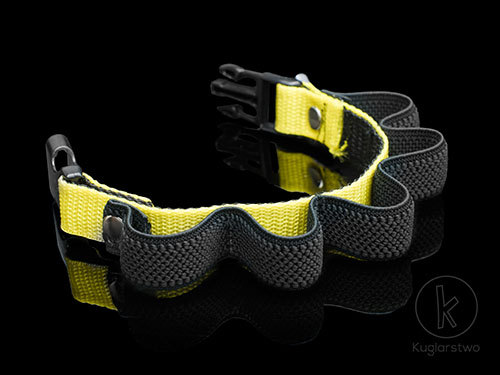 Das Gurtband ist 2-lagig und sehr stabil. Die Keulen werden durch ein stabiles Gummiband gehalten.