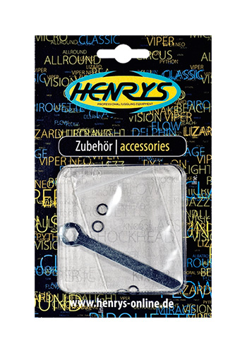 Ersatzteilset bestehend aus vier Unterlegscheiben und einem Schlüssel.