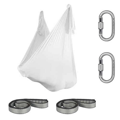 Das Aerial Yoga Tuch-Set ist eine durchdachte Lösung für Aerial Yoga, Luftakrobatik und Fitness. Es enthält ein strapazierfähiges Tuch aus 100 % Nylon, zwei stabile Oval Screw Karabiner sowie zwei belastbare O-Slings. Mit einer Bruchlast von 1450 kg und einer Arbeitslast von 207 kg (bei korrekter Verknotung mit den O-Slings) bietet das Set eine sichere Grundlage für vielseitige Übungen und Anwendungen.