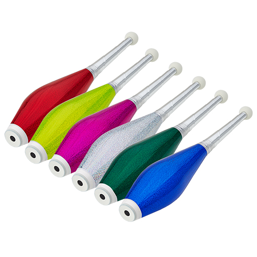 Bei dieser Keule ist der Körper vollständig mit Streifen einer Farbe aus Glitterfolie beklebt.