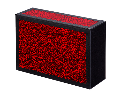Dekoriert mit Brokatdeko, auf der Stirnseite mit schwarzem Filz beklebt, die Seitenkanten sind mit schwarzem Gewebeband abgeklebt.