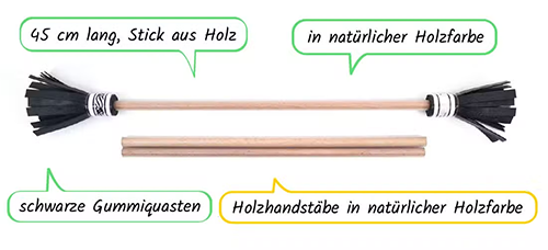 Länge: 45cm Stab (58cm mit Gummi-Quasten)