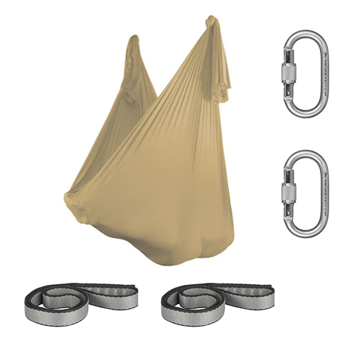 Das Aerial Yoga Tuch-Set ist eine durchdachte Lösung für Aerial Yoga, Luftakrobatik und Fitness. Es enthält ein strapazierfähiges Tuch aus 100 % Nylon, zwei stabile Oval Screw Karabiner sowie zwei belastbare O-Slings. Mit einer Bruchlast von 1450 kg und einer Arbeitslast von 207 kg (bei korrekter Verknotung mit den O-Slings) bietet das Set eine sichere Grundlage für vielseitige Übungen und Anwendungen.
