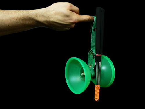 Mit diesem Universalstrap lassen sich verschiedene Jonglierutensilien wie z.B. Diabolos, Flowersticks oder Jonglierringe transportieren.