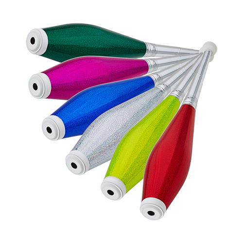 The body of these clubs is completely decorated with stripes of one color in glittery tape.