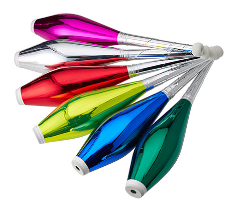 The body of these clubs is completely decorated with stripes of one color in metallic tape.