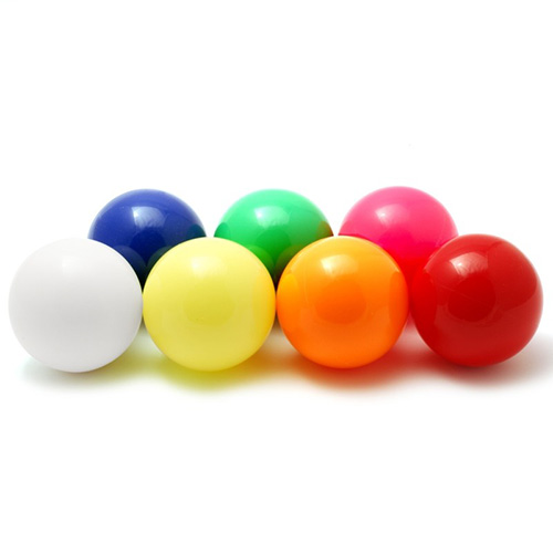 The Play Stage Ball is hollow and made of a flexible PVC which gives the ball great grip. It is excellent for performing because it has virtually no bounce and won’t go too far when dropped. UV reactive colours except white and red.